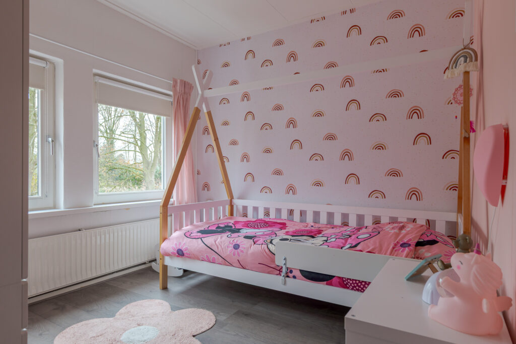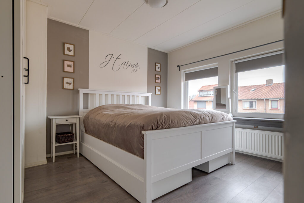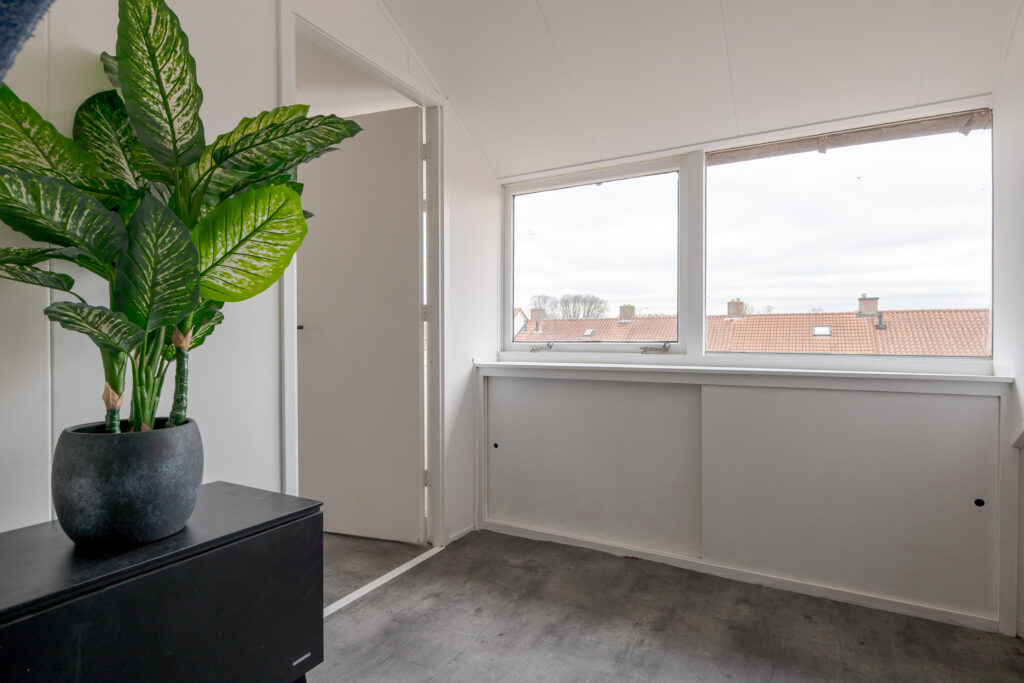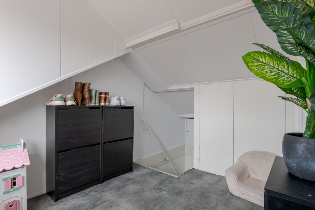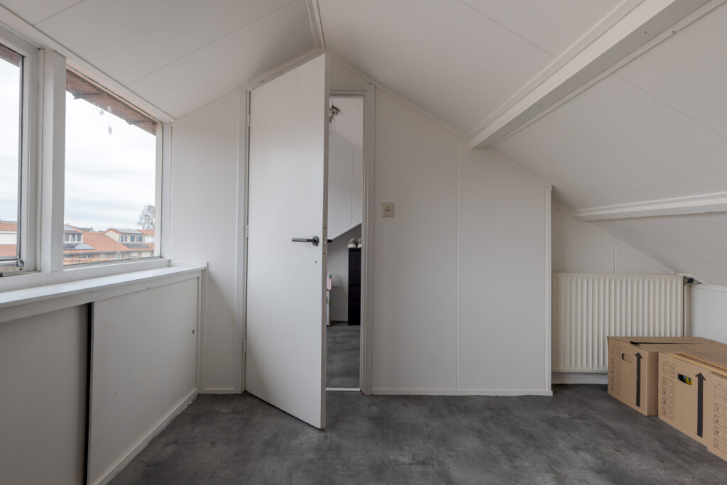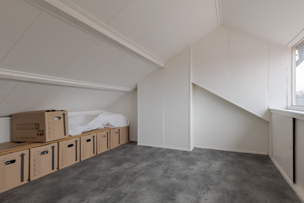 De tweede verdieping is bereikbaar via een vaste trap en hier treft u de vierde slaapkamer. Door de dakkapel is hier extra ruimte en licht ontstaan en onder het schuine deel is er praktische bergruimte aanwezig.
