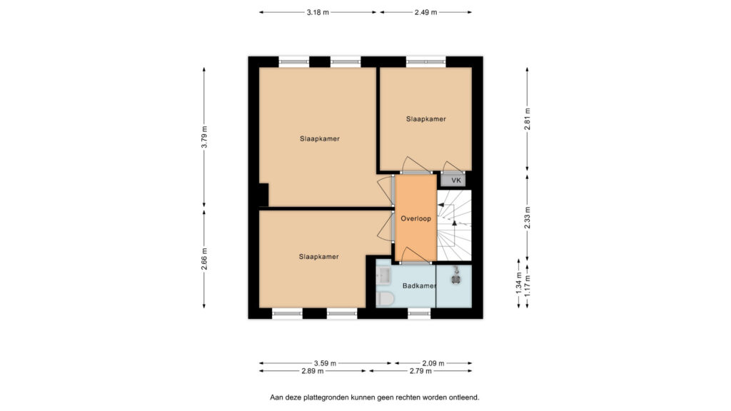 Op de eerste verdieping zijn er drie slaapkamers aanwezig, ieder met een lichte en verzorgde uitstraling. De badkamer (2019) is uitgerust met een douche, toilet en een wastafel.