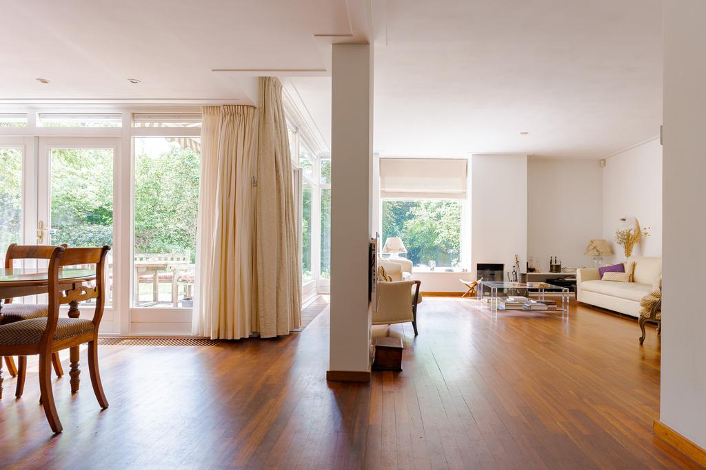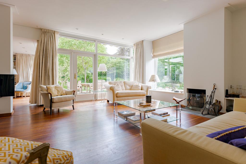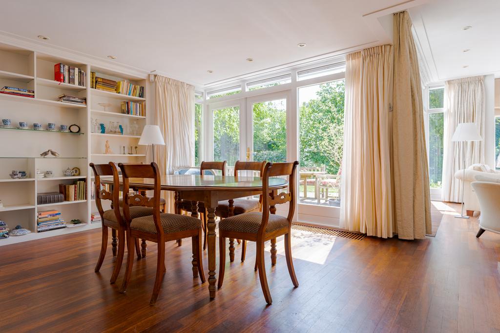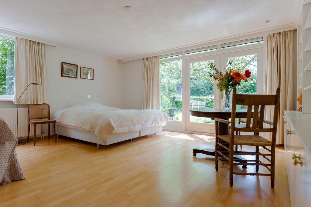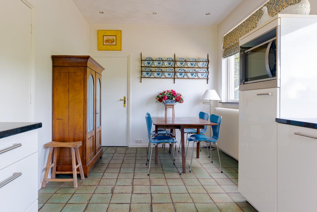 De tuingerichte woonkamer met eetkamer zijn voorzien van talrijke raampartijen met uitzicht naar de tuin, dit zorgt voor veel lichtinval en een mooie verbintenis tussen binnen en buiten. Via de 2 openslaande deuren loopt u zo de tuin in. Genieten van een goed boek bij de sfeervolle openhaard maakt uw dag compleet! Op warme zomerdagen geeft de airco een fijne verkoeling.