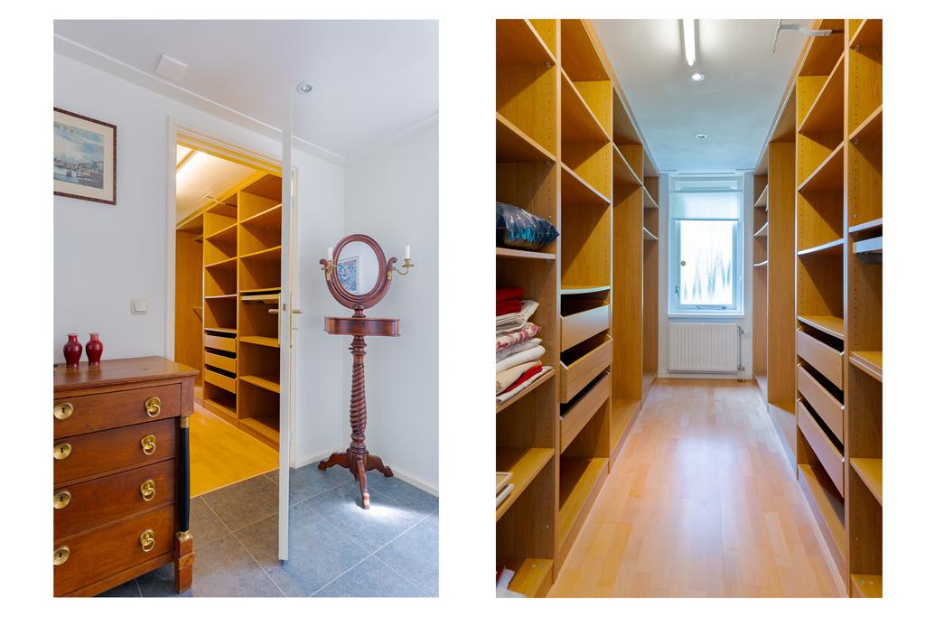Bijna alle slaapkamers zijn voorzien van vaste kasten, maar indien u op zoek bent naar meer opbergruimte biedt de walk in closet uitkomst. Deze is toegankelijk vanuit de hal.