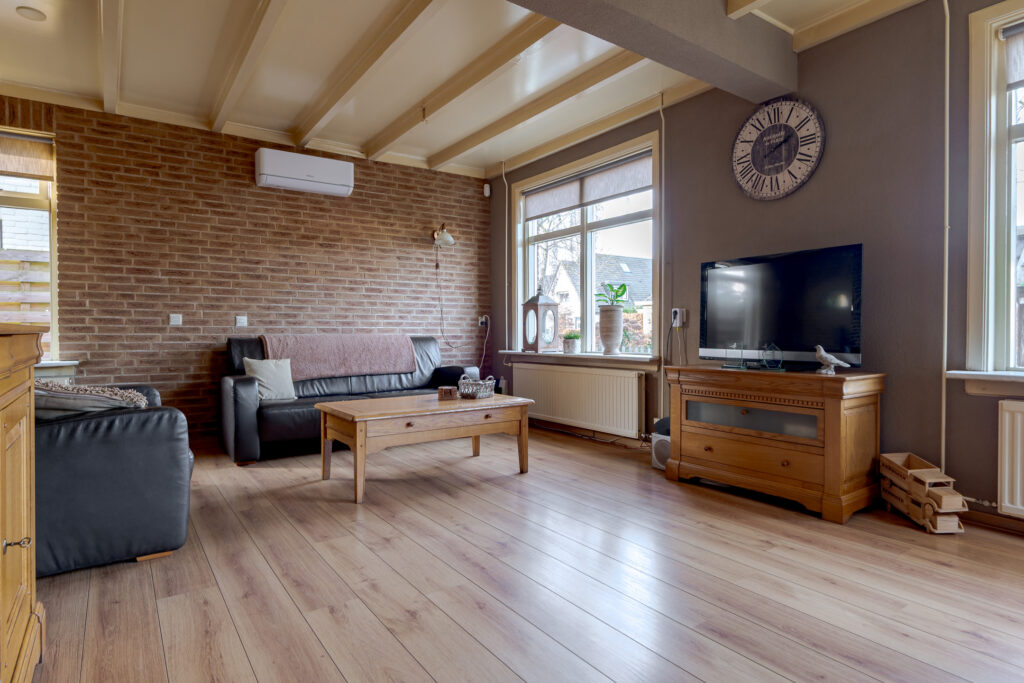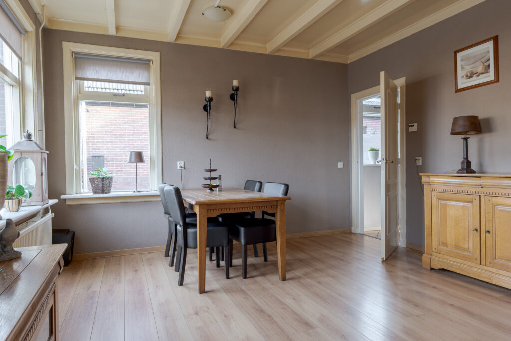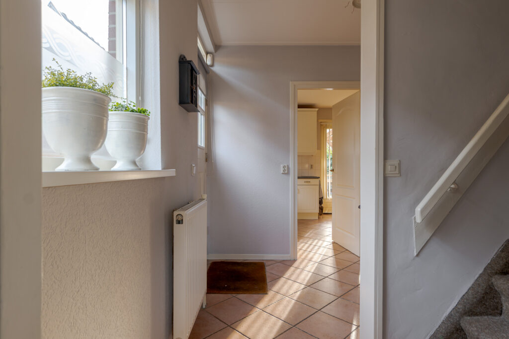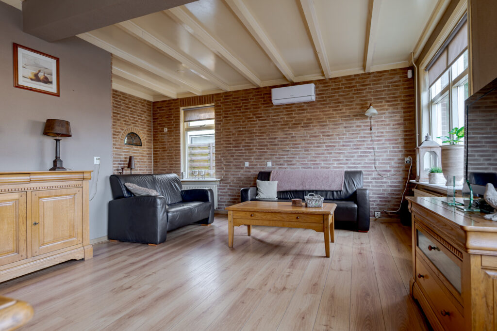 Bij binnenkomst valt direct de logische en praktische indeling van de woning op. Vanuit de hal heeft u toegang tot de woonkamer, het toilet, de trap naar de eerste verdieping en de ruime, dichte keuken met eetgedeelte. Vanuit de keuken bereikt u de bijkeuken. De woonkamer van circa 29 m² is ruim opgezet en vanuit hier is er een uitzicht op de Dorpsweg. Dankzij de aanwezige airconditioning en vloerverwarming in de keuken is het binnenklimaat het hele jaar door aangenaam.
