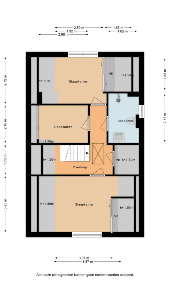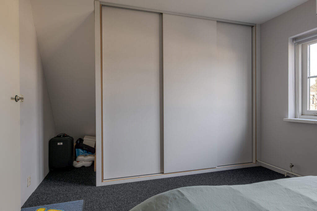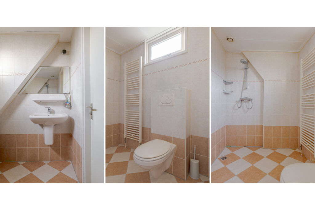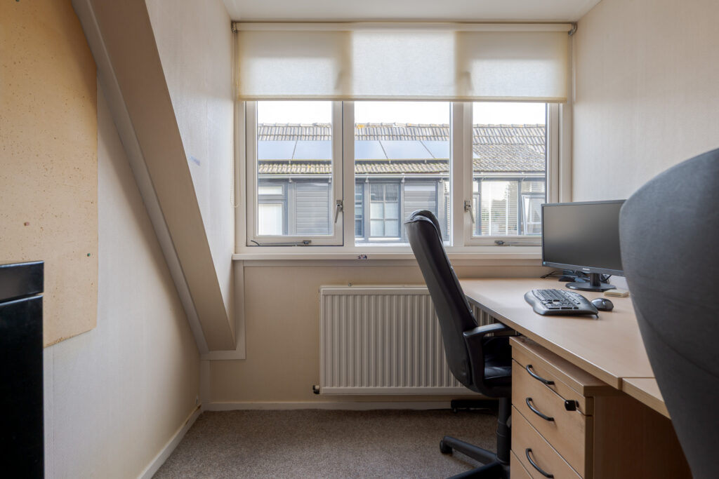 Op de verdieping bevinden zich drie slaapkamers, allen van goed formaat. De badkamer is voorzien van een douche, toilet en wastafel. Via een vlizotrap is de zolder bereikbaar, die dienstdoet als praktische bergzolder.