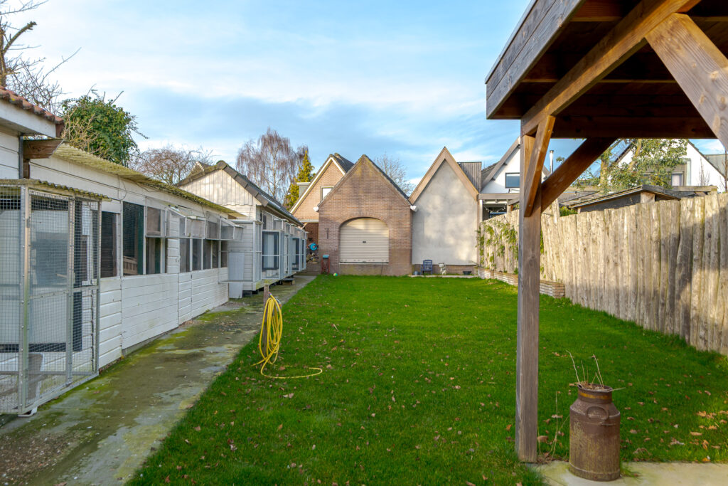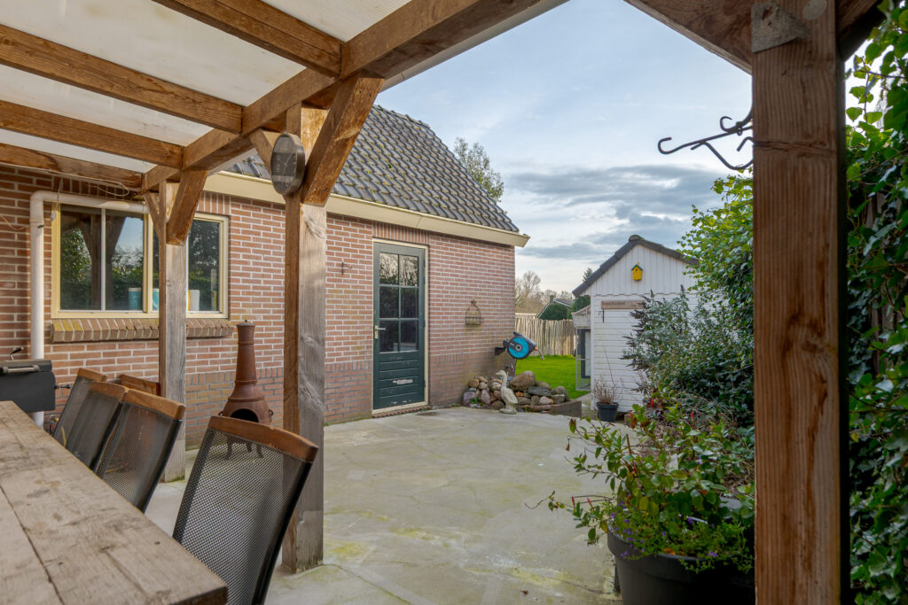 De woning springt direct in het oog dankzij de fraaie gevel en het ruime erf met volop parkeergelegenheid op eigen terrein. De vrijstaande stenen garage met elektra en de separate houten berging bieden praktische opslagmogelijkheden en maken het buitenleven compleet. De tuin is rondom fraai aangelegd en beschikt over een achterom, waardoor u altijd een fijne plek vindt om te ontspannen in de zon of schaduw.