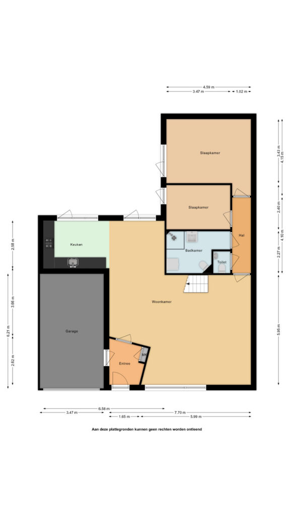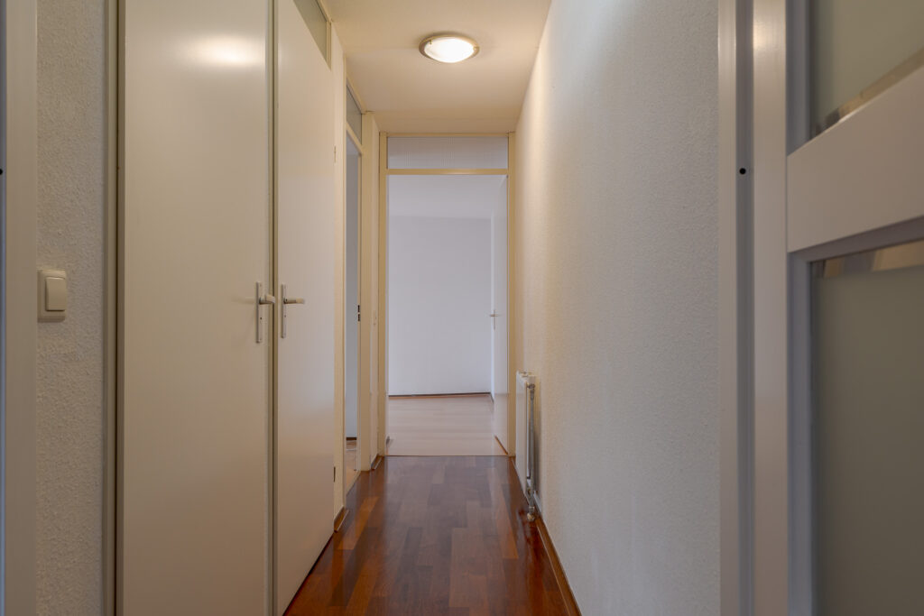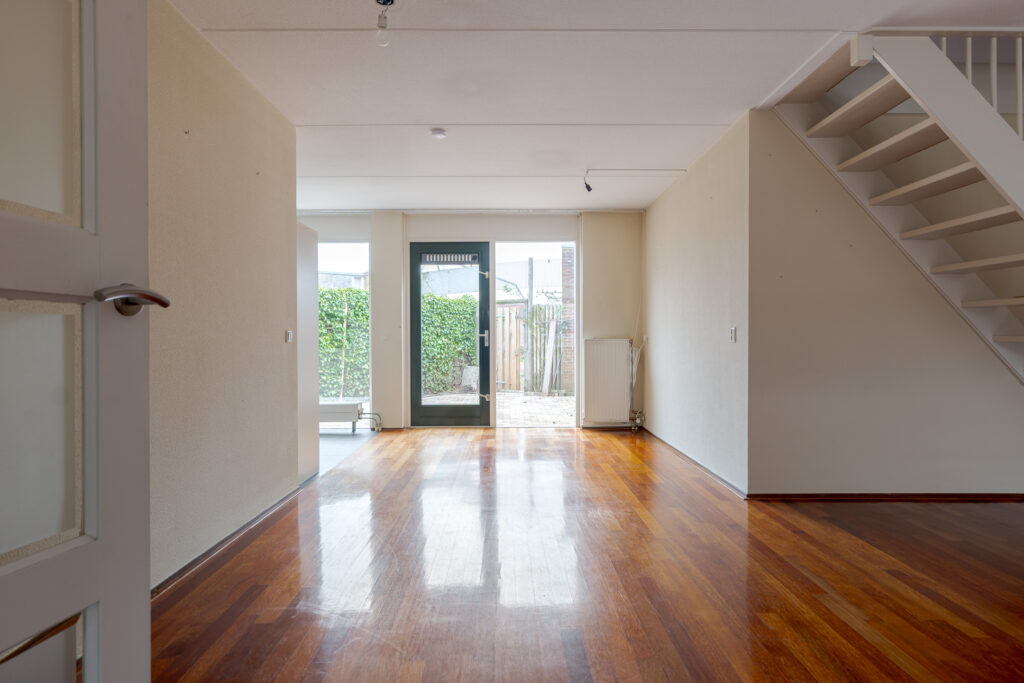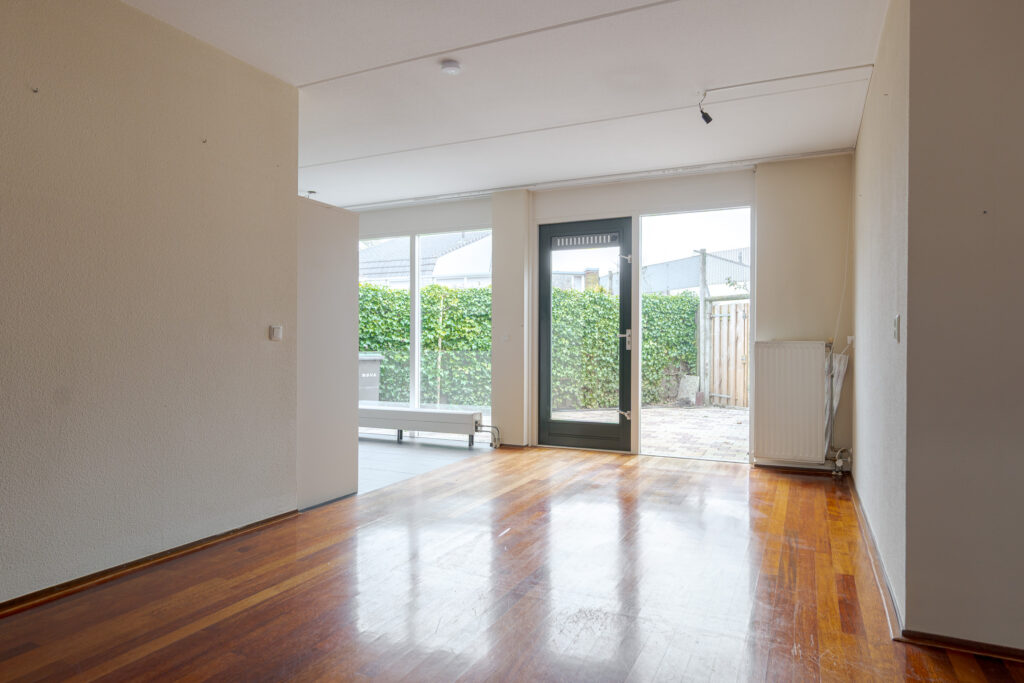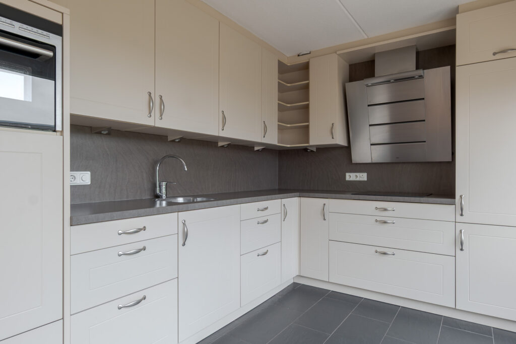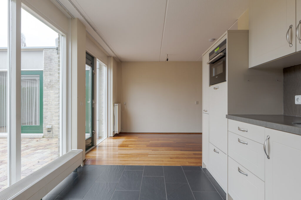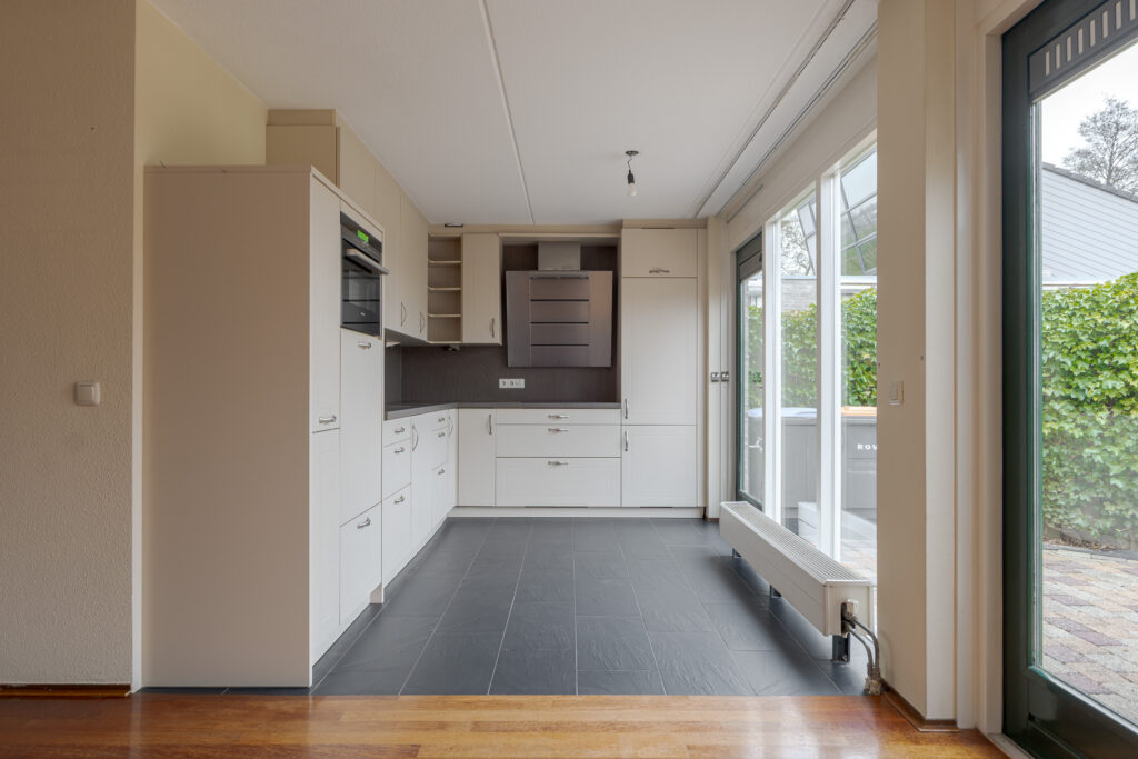 Via de entree komt u binnen in de hal met meterkast. Vanuit hier loopt u door naar de royale woonkamer. Dankzij de grote raampartijen en de schuifpui naar de tuin geniet u hier van veel daglicht en een prettige verbinding met buiten. De vloer in combinatie met de lichte wandafwerking zorgen voor een rustige en verzorgde uitstraling. De keuken bevindt zich aan de achterzijde van de woning en is uitgevoerd in een lichte kleurstelling. Er is voldoende werk- en bergruimte aanwezig, waardoor koken hier praktisch en overzichtelijk is ingericht.