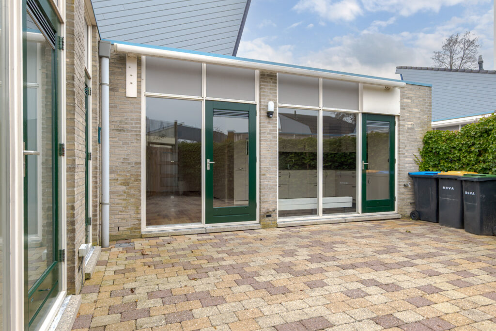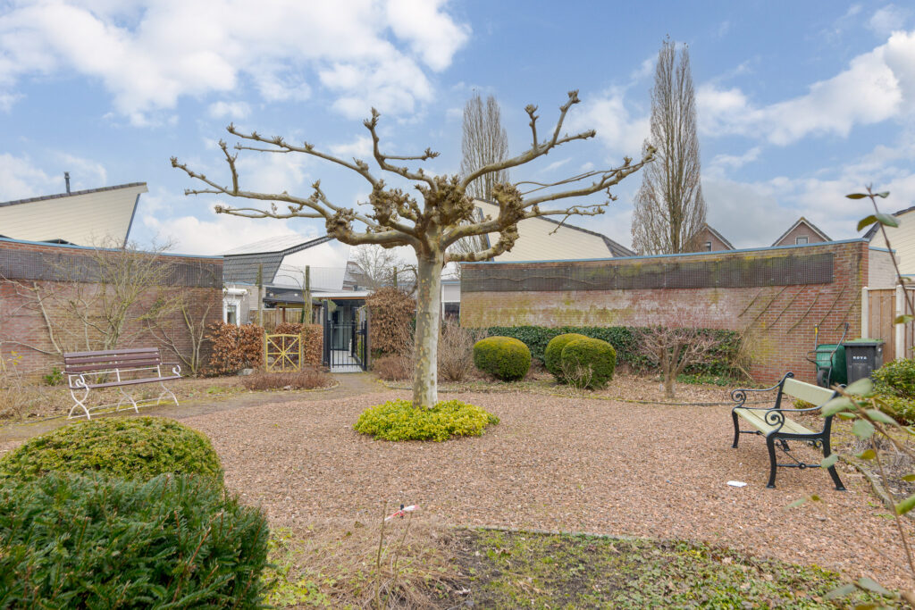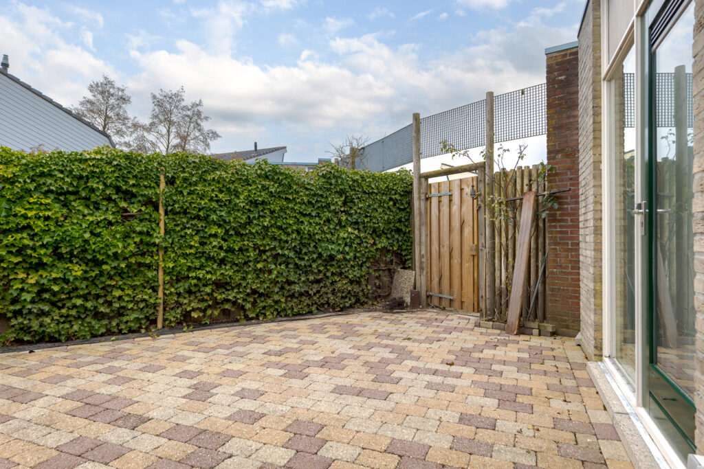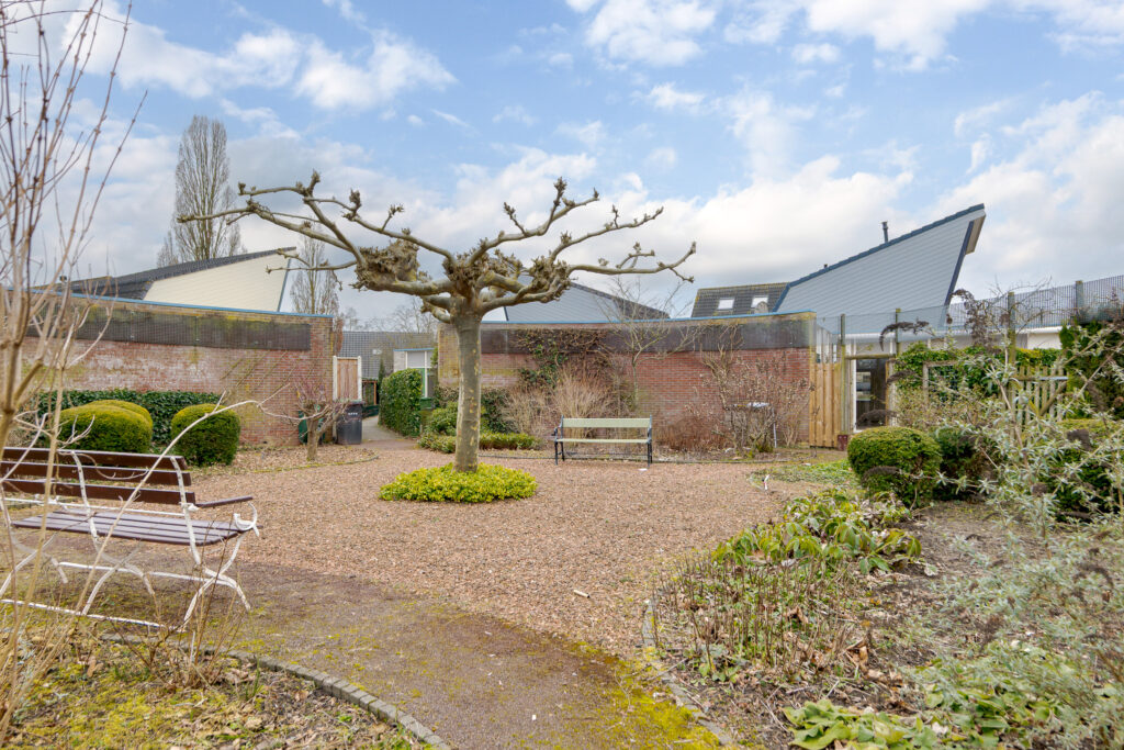 De woning beschikt over een onderhoudsvriendelijke achtertuin op het noordoosten, bereikbaar via de schuifpui en voorzien van een achterom. Daarnaast maakt u als bewoner gebruik van de gezamenlijke binnentuin van bewonersvereniging De Weidevogels. Deze is centraal gelegen en vormt het hart van het hofje.