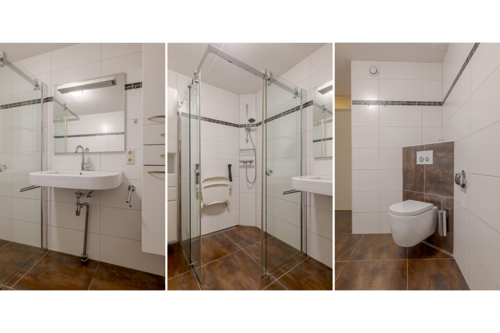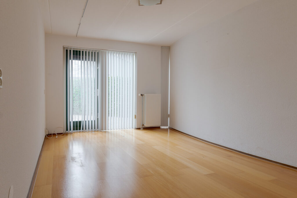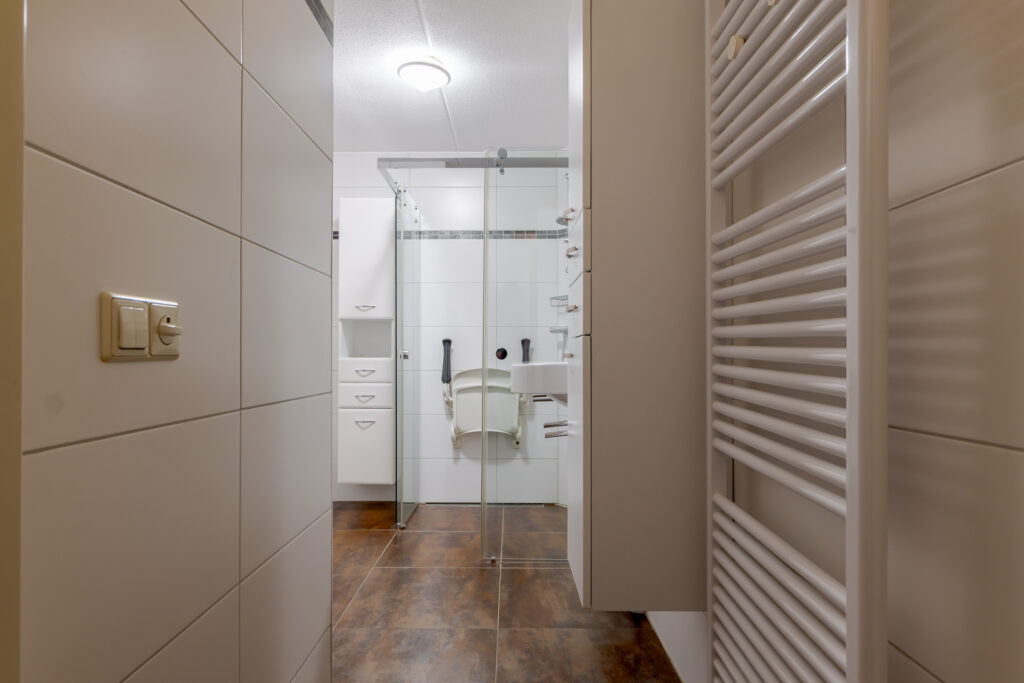 Wat deze woning extra aantrekkelijk maakt, is het gelijkvloerse wonen. Op de begane grond bevinden zich twee slaapkamers en de badkamer. De badkamer is licht betegeld en voorzien van een douche, wastafel, toilet en de wasmachineaansluiting.
