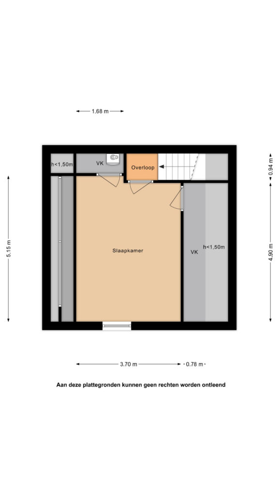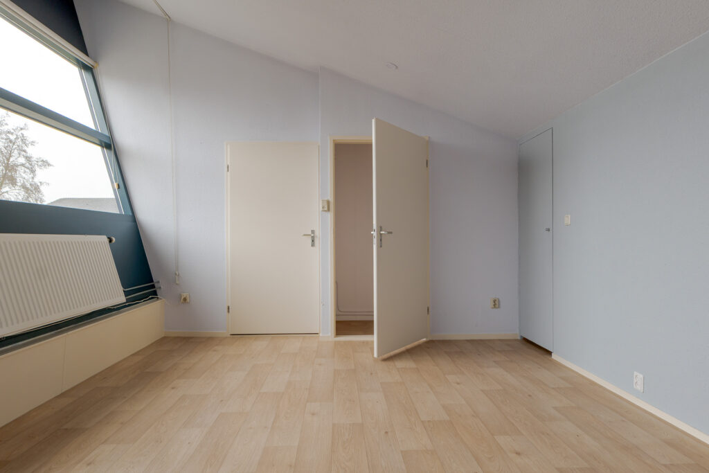 Via de trap in de woonkamer bereikt u de verdieping. Hier treft u een overloop en een derde slaapkamer. Daarnaast is er bergruimte aanwezig, ideaal voor het opbergen van seizoensspullen.