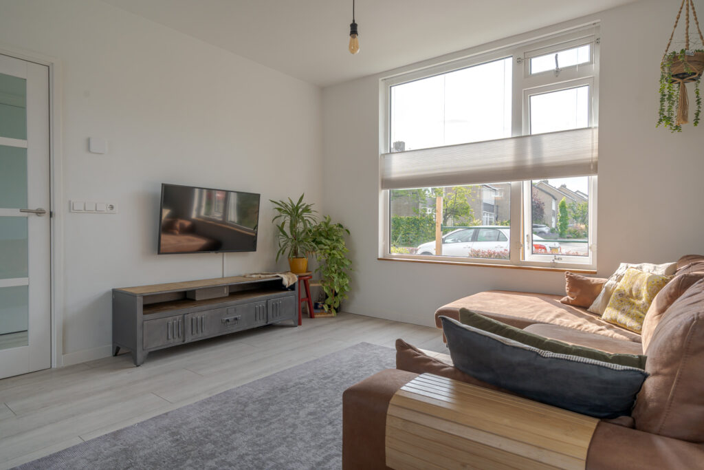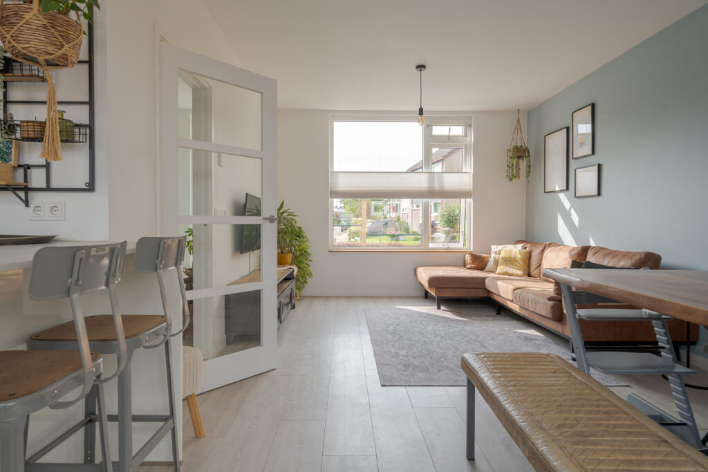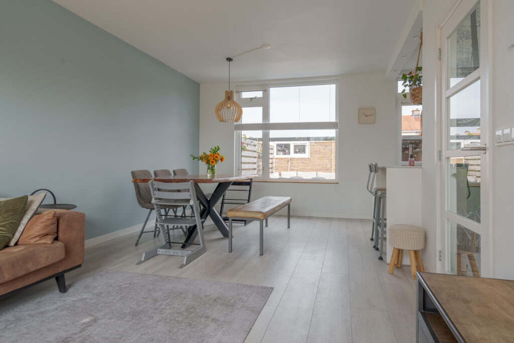 Via de voortuin komt u binnen in de hal met meterkast, trappenkast en toilet. De lichte woonkamer heeft ruimte voor zowel een gezellige zithoek als een fijne eethoek. De moderne keuken (2020) is praktisch ingedeeld en staat in open verbinding met de woonkamer. Vanuit de keuken stapt u direct de achtertuin in.