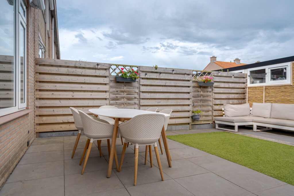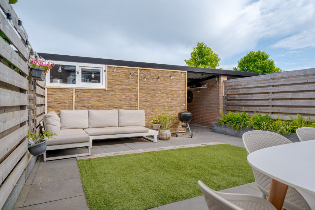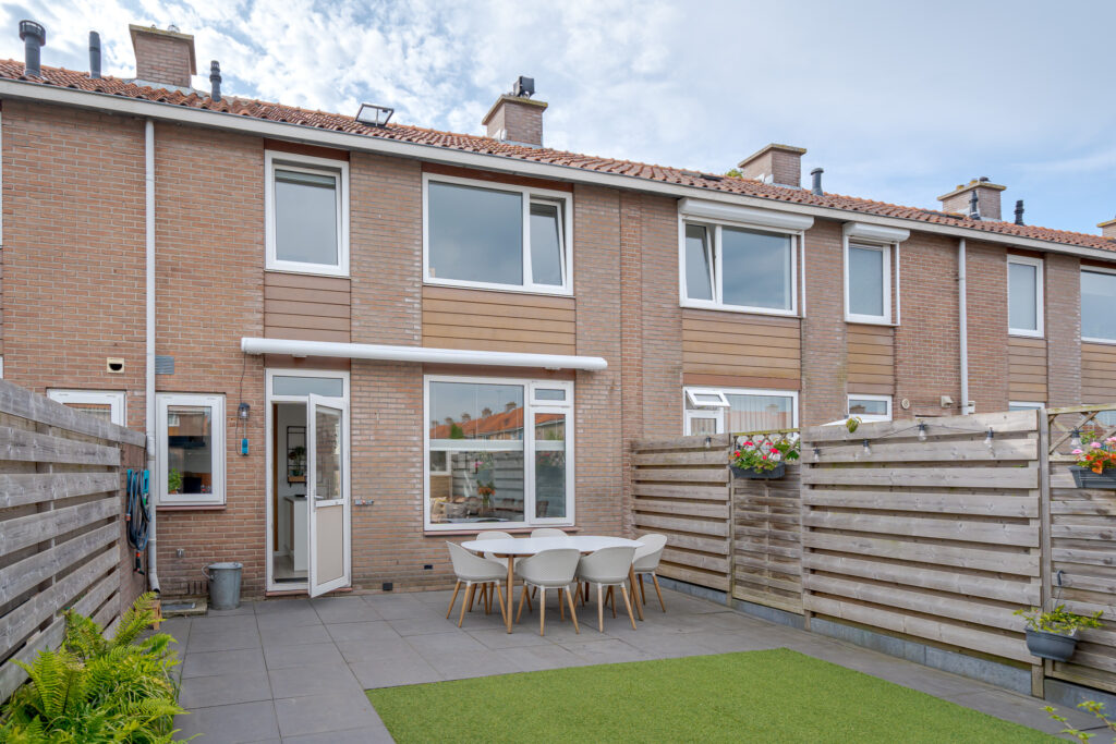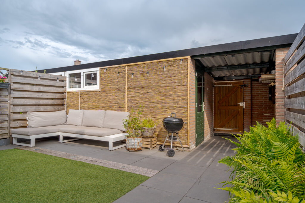 De achtertuin is gelegen op het noordwesten en beschikt over een achterom en een vrijstaande stenen berging. Hier is het heerlijk genieten van de middag- en avondzon of een gezellige barbecue met familie/vrienden.