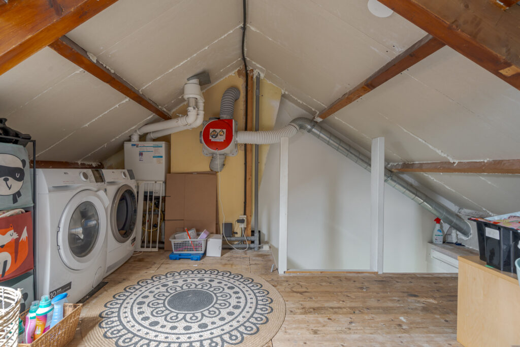Op de eerste verdieping bevinden zich drie goed bemeten slaapkamers en een badkamer met douche en wastafelmeubel. Een apart toilet maakt deze verdieping extra praktisch. De tweede verdieping, bereikbaar via een vaste trap, biedt volop mogelijkheden als extra slaapkamer, hobbyruimte of voor bergruimte.