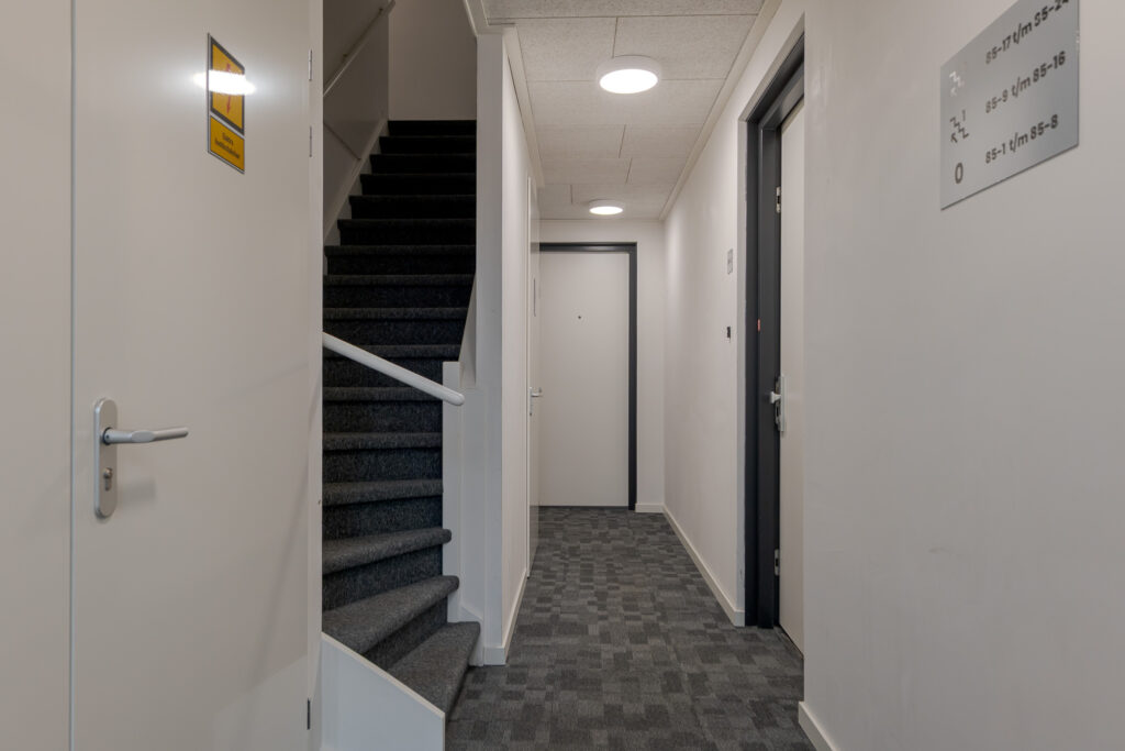 U komt binnen in de gezamenlijke hal, hier treft u de brievenbussen, lift en trapopgang aan.