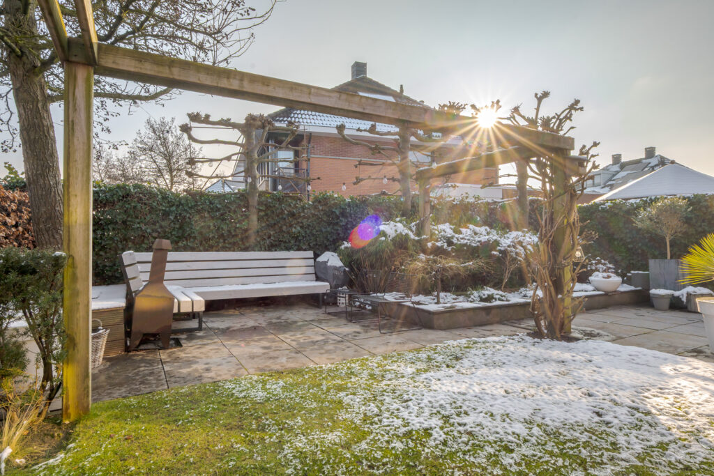 De achtertuin is verzorgd aangelegd, gelegen op het zonnige zuiden en biedt volop ruimte om op verschillende momenten van de dag van de zon te genieten. Met een achterom en de aanwezigheid van een voortuin en zijtuin is het buitenleven hier compleet. Parkeren kan op eigen terrein.
