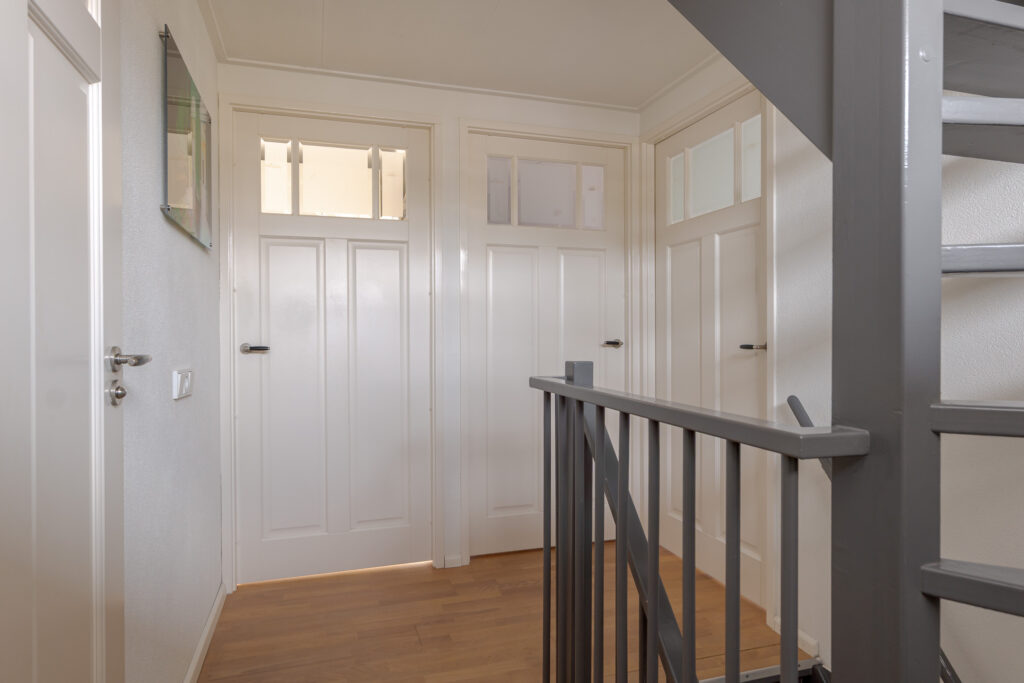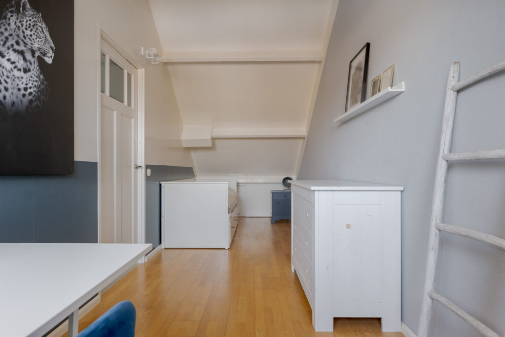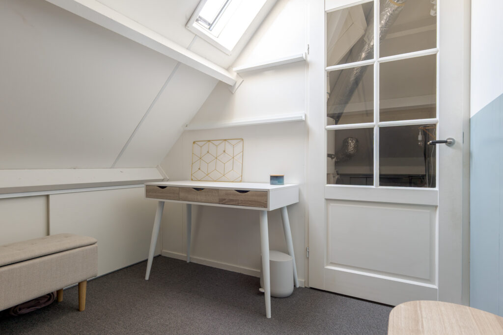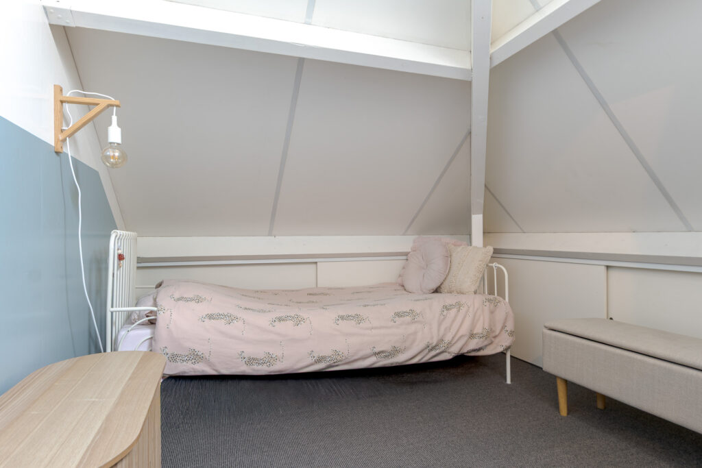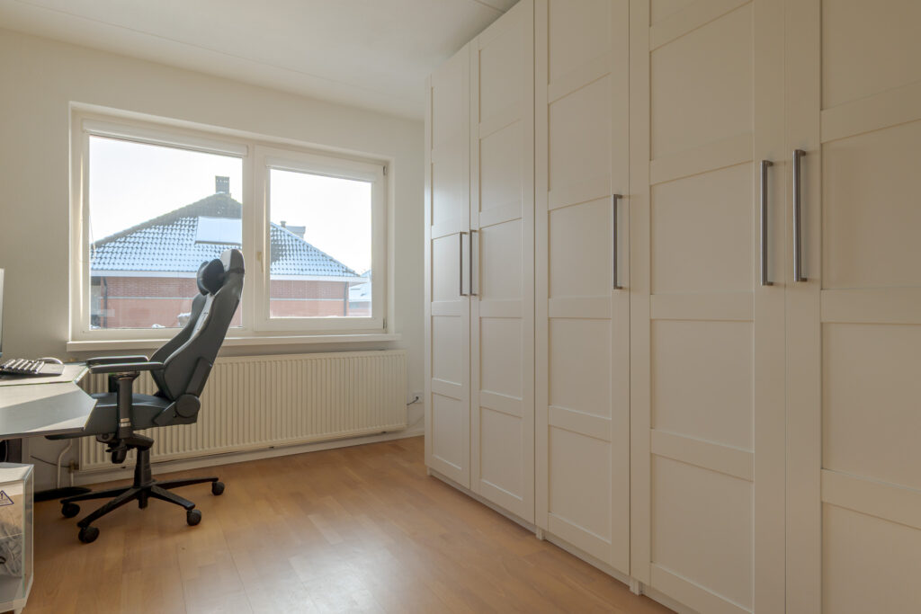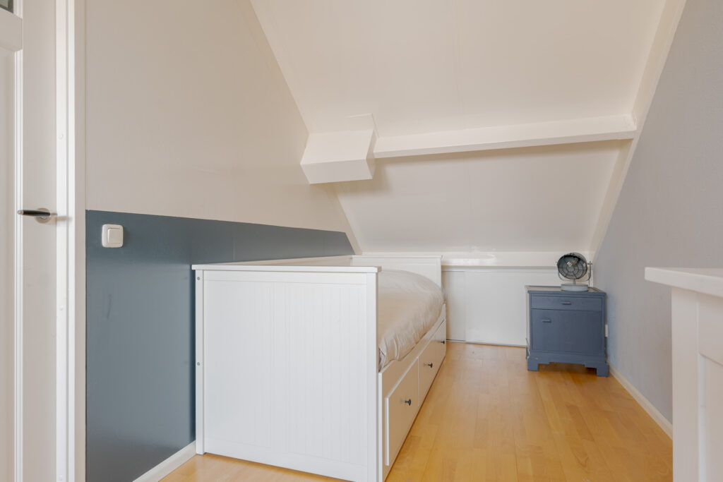 Op de tweede verdieping vindt u nog eens twee slaapkamers en een praktische overloop met de cv-ketel en aansluiting voor de wasmachine. Daarnaast is er veel praktische bergruimte aanwezig achter de knieschotten. Deze verdieping is uitstekend geschikt voor een groot gezin of thuiswerken.