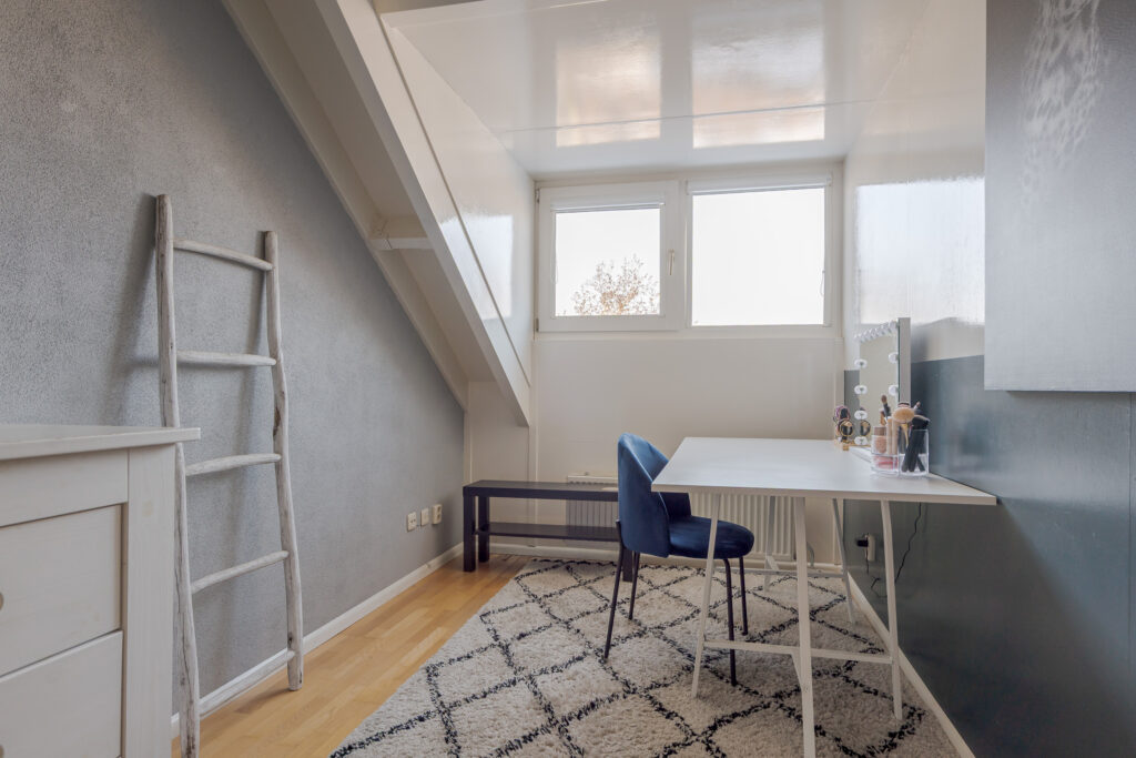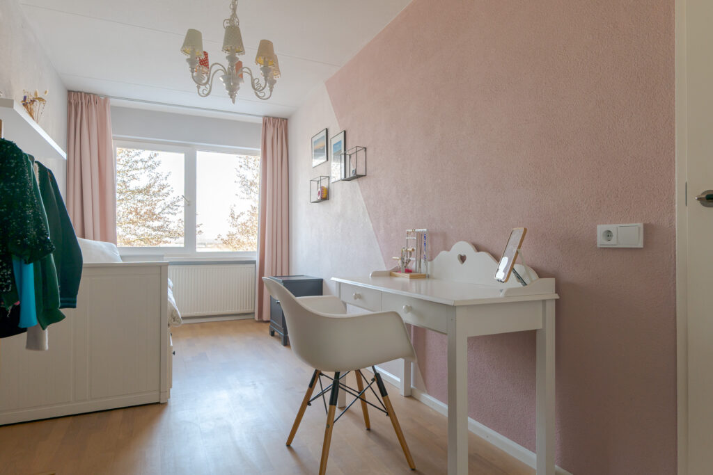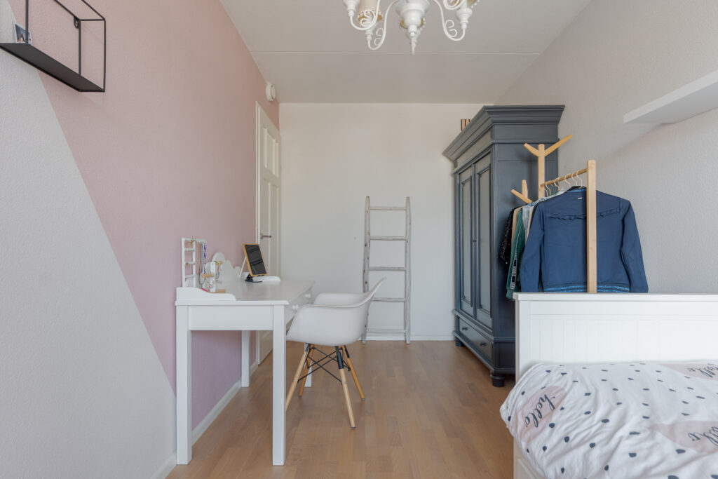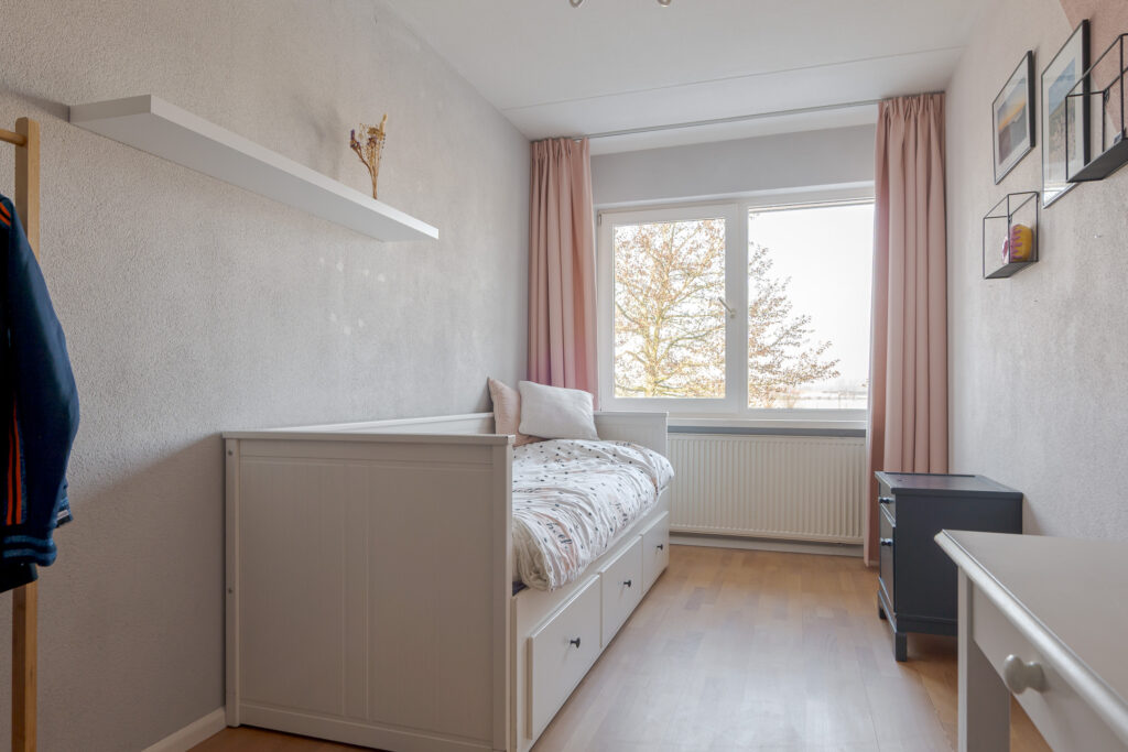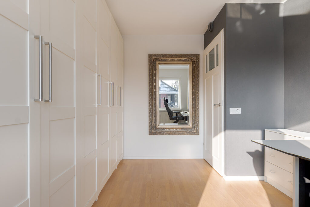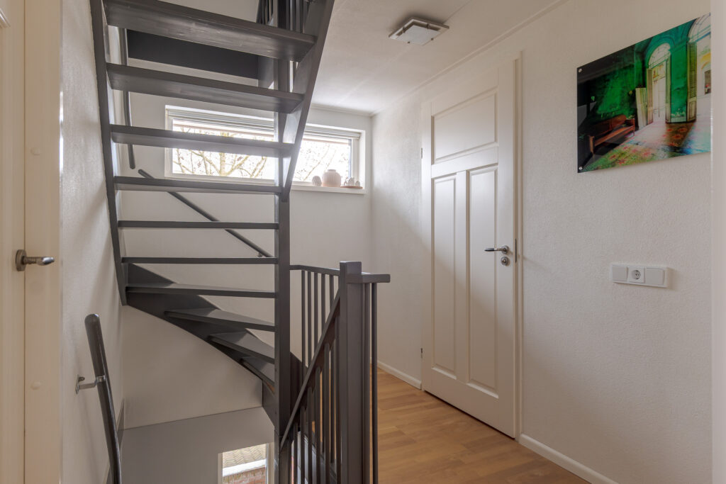 Op de tweede verdieping vindt u nog eens twee slaapkamers en een praktische overloop met de cv-ketel en aansluiting voor de wasmachine. Daarnaast is er veel praktische bergruimte aanwezig achter de knieschotten. Deze verdieping is uitstekend geschikt voor een groot gezin of thuiswerken.